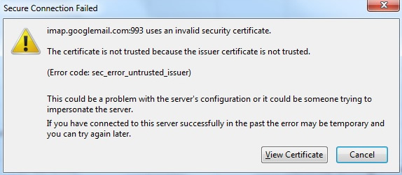 If you use anti-virus software, you may see an error message about an invalid security certificate when you're setting up an account or when you're fetching mail from an account.